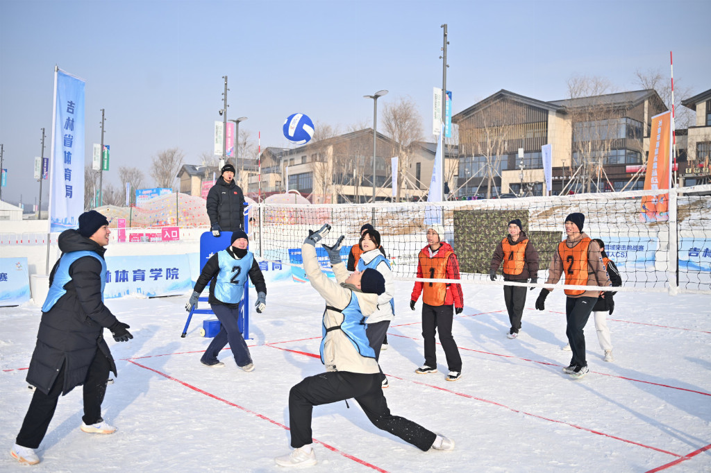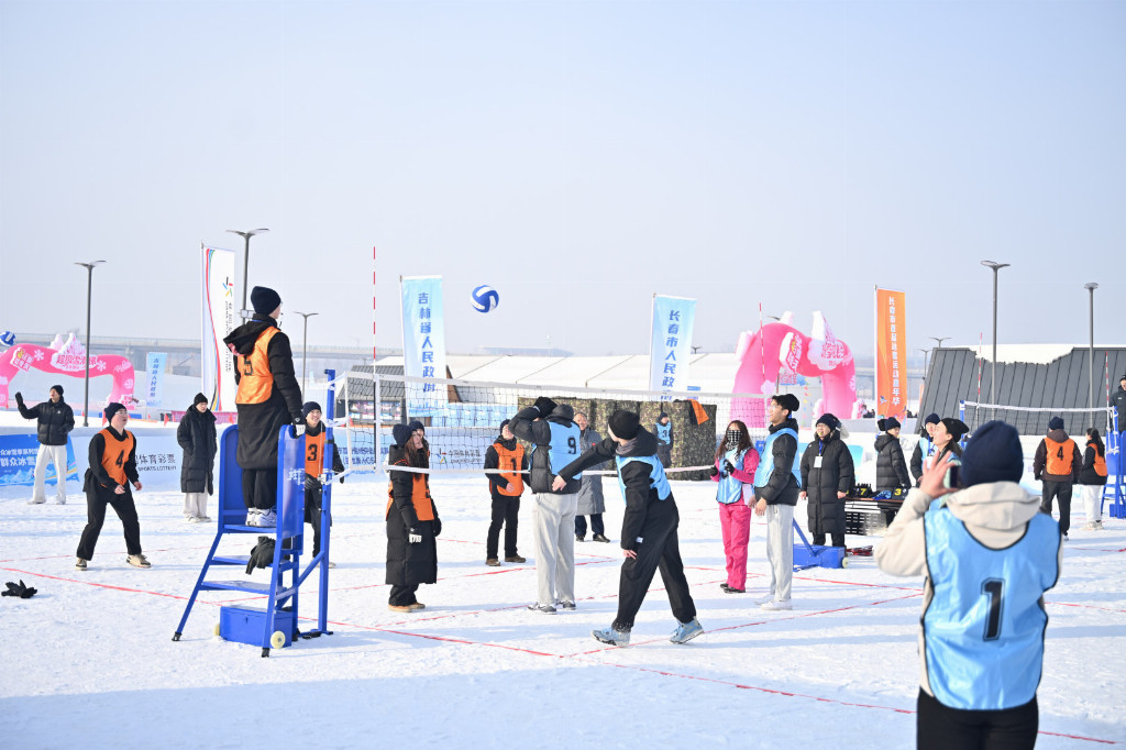 2026年1月9日上午,长春市雪地气排球比赛在长春市肆季南河岸线公园开赛。